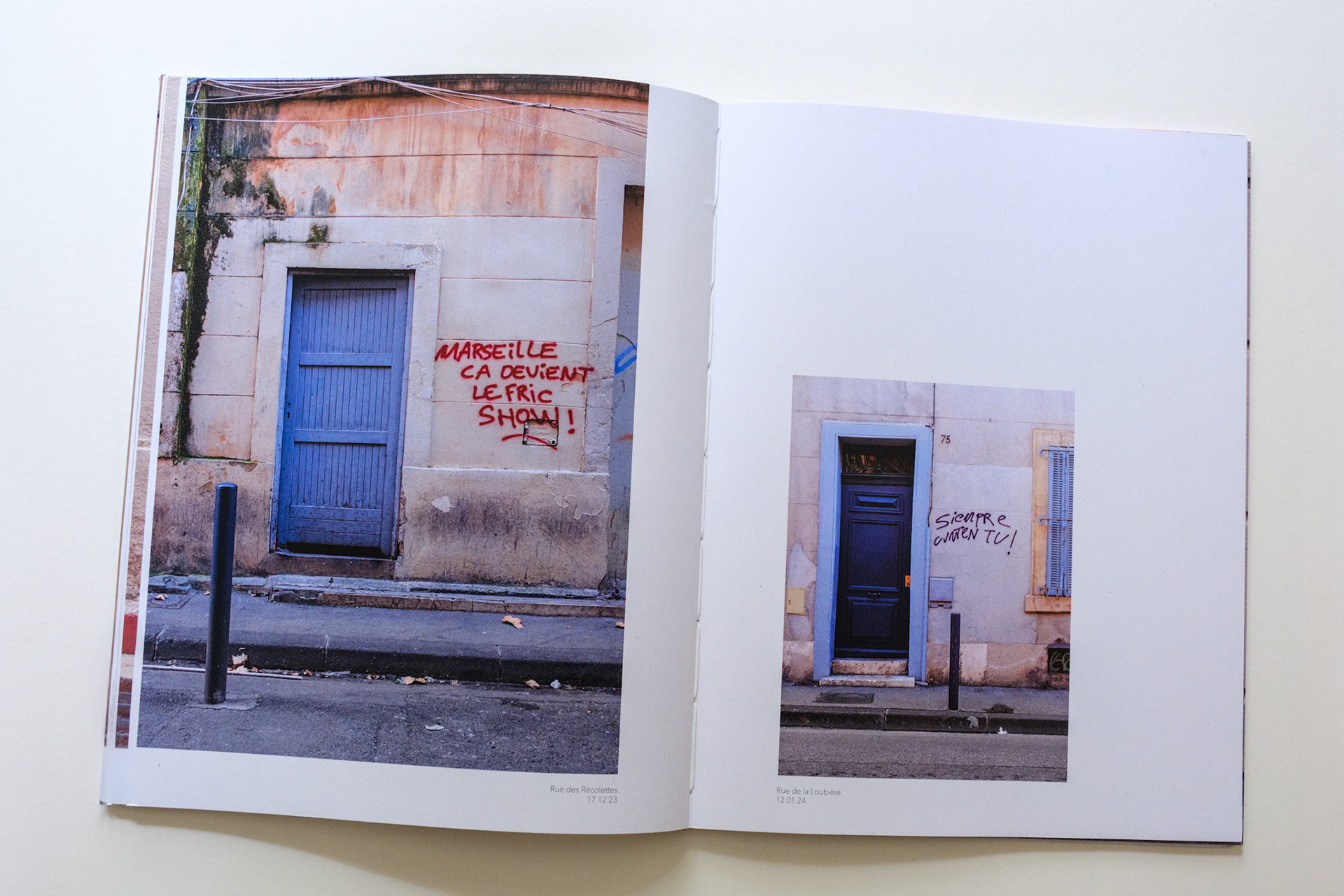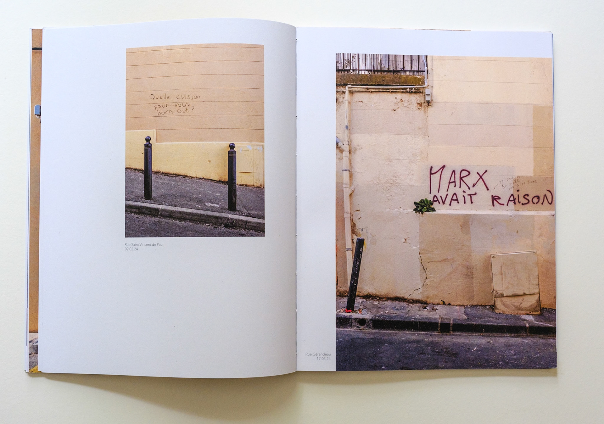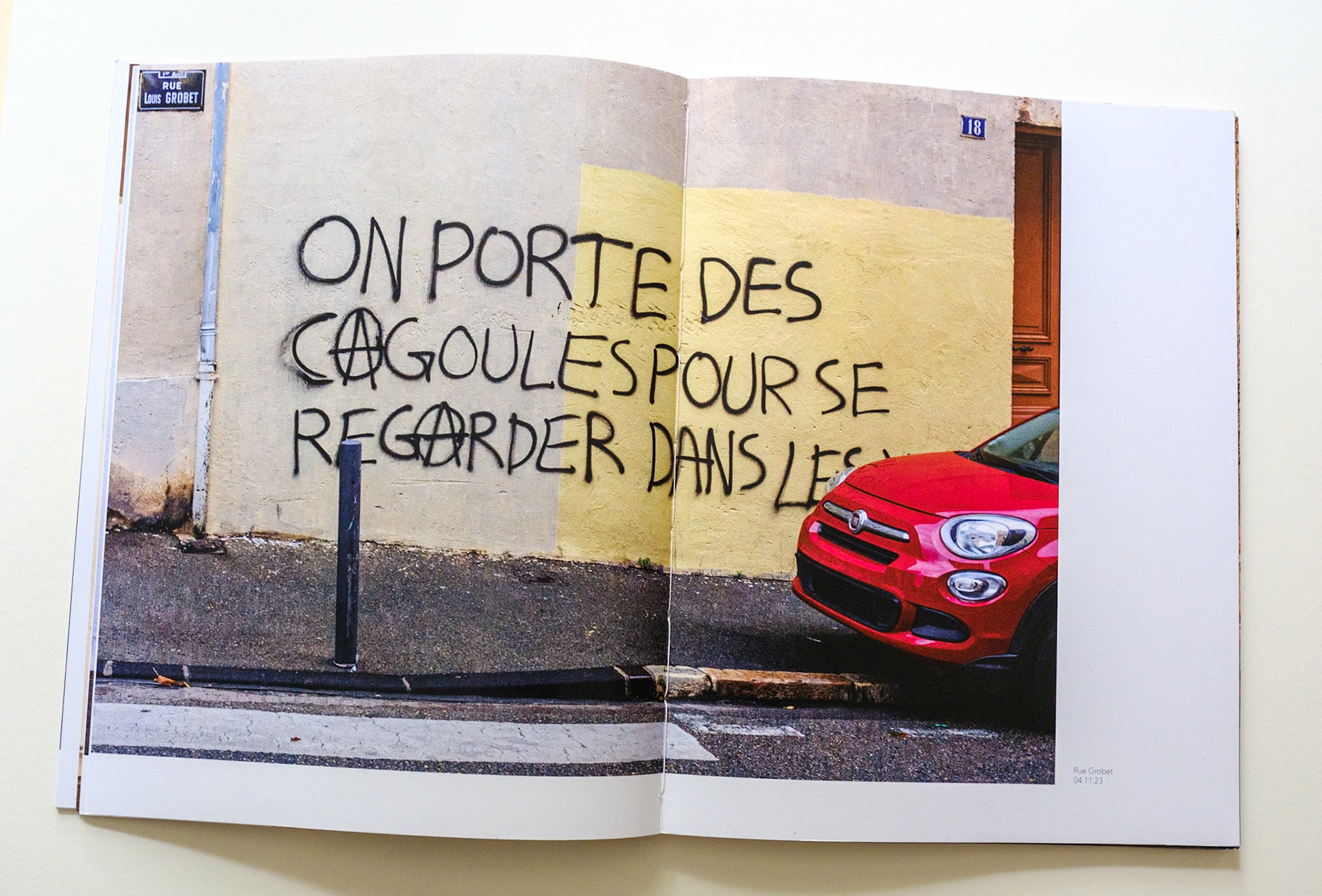Quelques vues du livre "Écritures urbaines" réalisé artisanalement. Format 21 x 27 100 pages Reliure cousue dos apparent